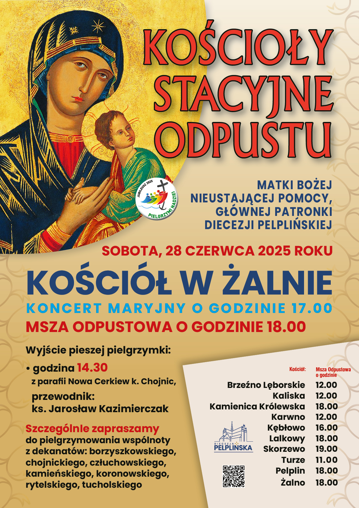 Kontynuując rozpoczęty w zeszłym roku zwyczaj pielgrzymowania do kościołów świętujących odpust Matki Bożej Nieustającej Pomocy, głównej patronki naszej diecezji, Wydział Duszpasterski zachęca do udziału w tej pielgrzymce także w tym roku.