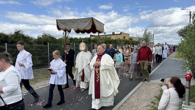 Dzisiejsza uroczystość Bożego Ciała w naszej parafii w Mąkowarsku była wyjątkowym wydarzeniem, które zgromadziło licznych wiernych. Cała wspólnota parafialna z wielkim zaangażowaniem przygotowała obchody, co było widoczne w każdym detalu.