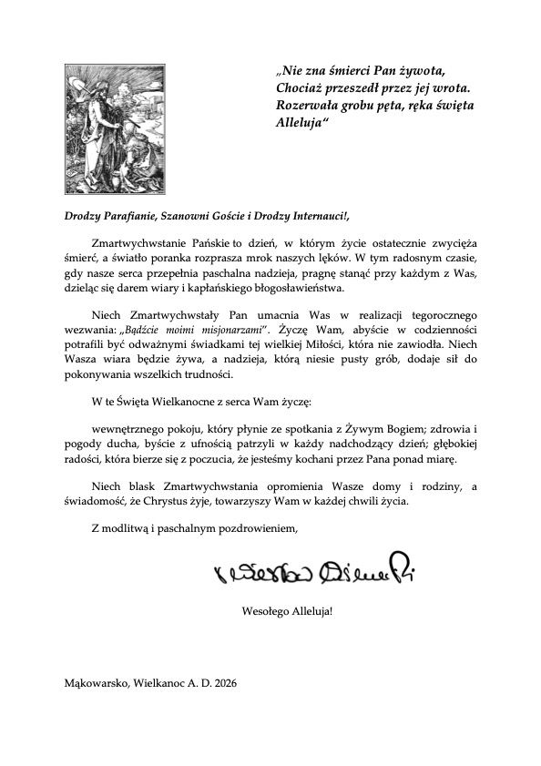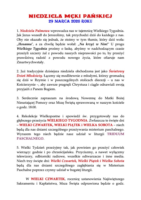 OGŁOSZENIA PARAFIALNE - NIEDZIELA MĘKI PAŃSKIEJ - 29 MARCA 2026 ROKU